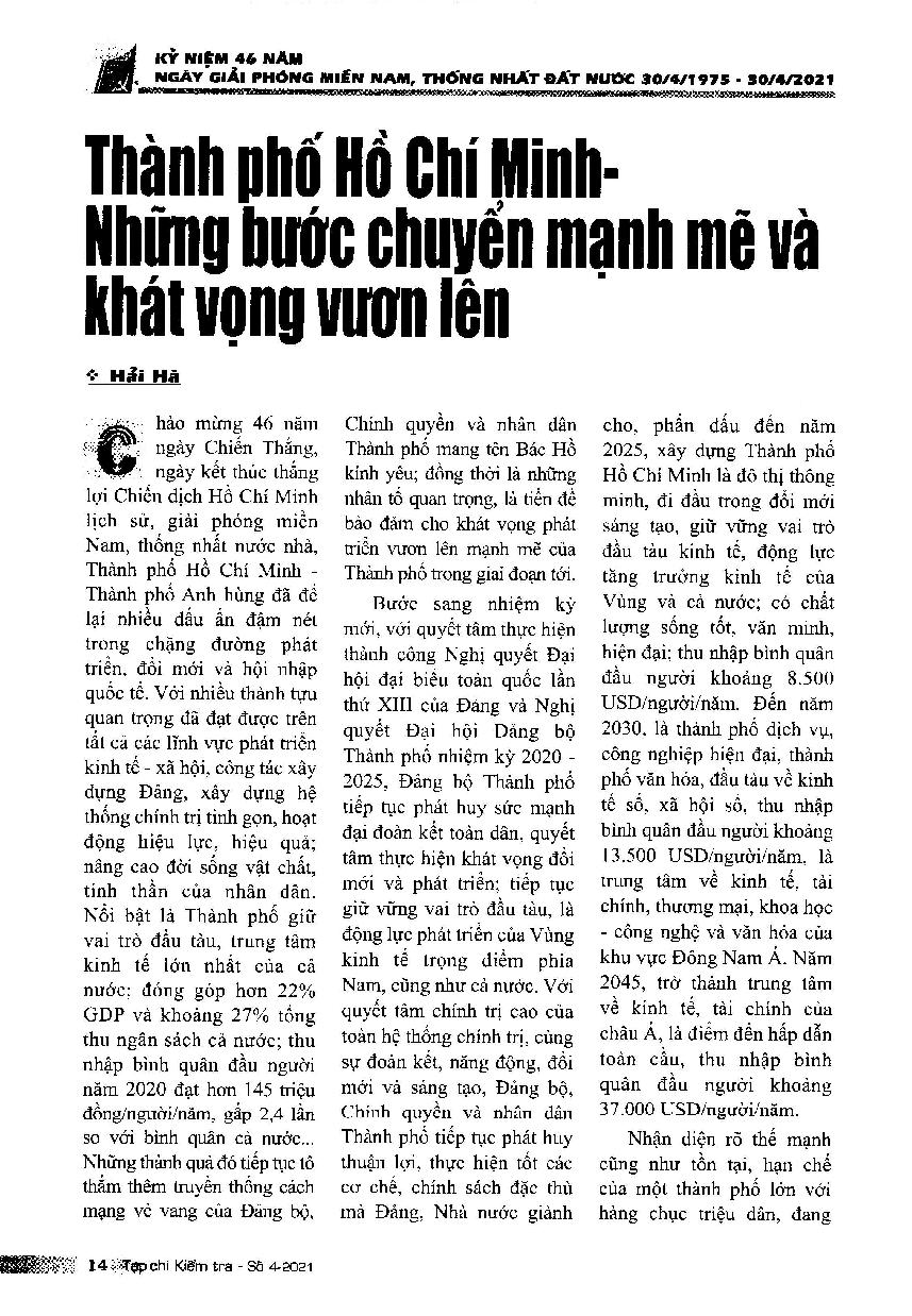 Thành phố Hồ Chí Minh - Những bước chuyển mạnh mẽ và khát vọng vươn lên