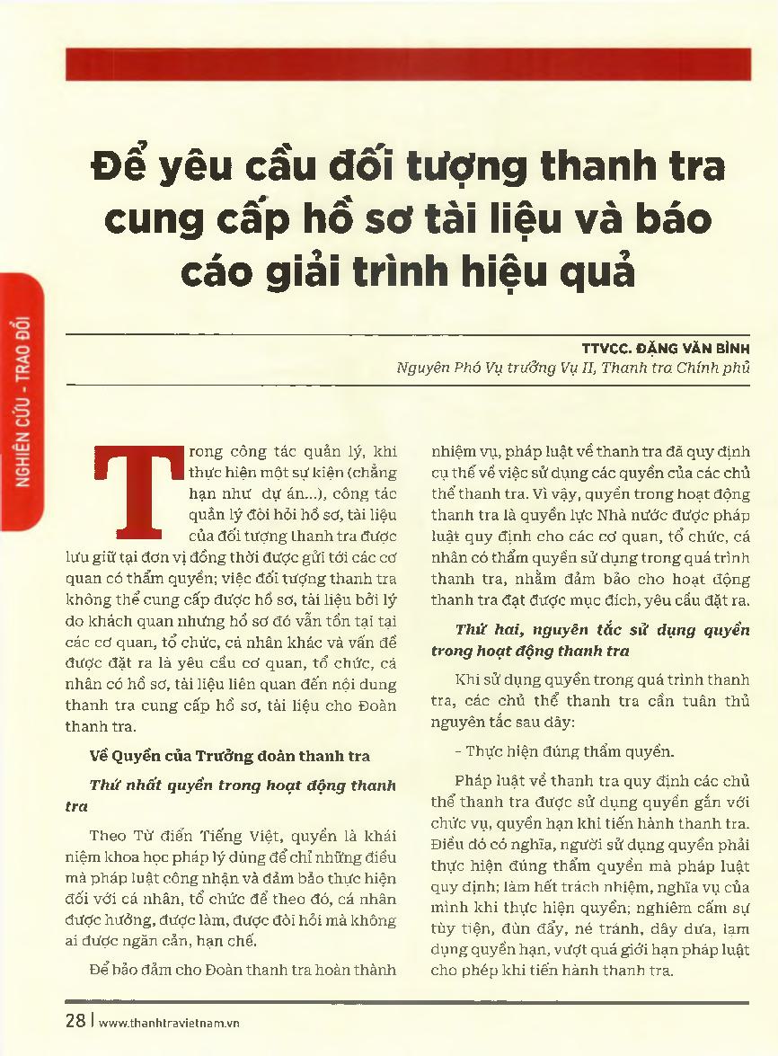 Để yêu cầu đối tượng thanh tra cung cấp hồ sơ tài liệu và báo cáo giải trình hiệu quả