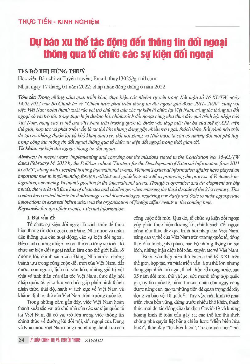 Tác giả: Nguyễn Lâm Hoài Phương; Trần Nguyên Ánh Tú; Nguyễn Trọng Hào;