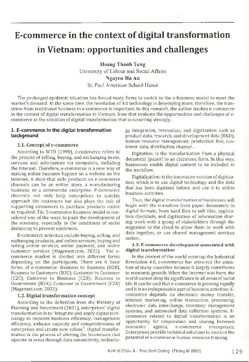 Thương mại điện tử trong bối cảnh chuyển đổi số ở Việt Nam: cơ hội và thách thức = E-commerce in the context of digital transformation in Vietnam: opportunities and challenges