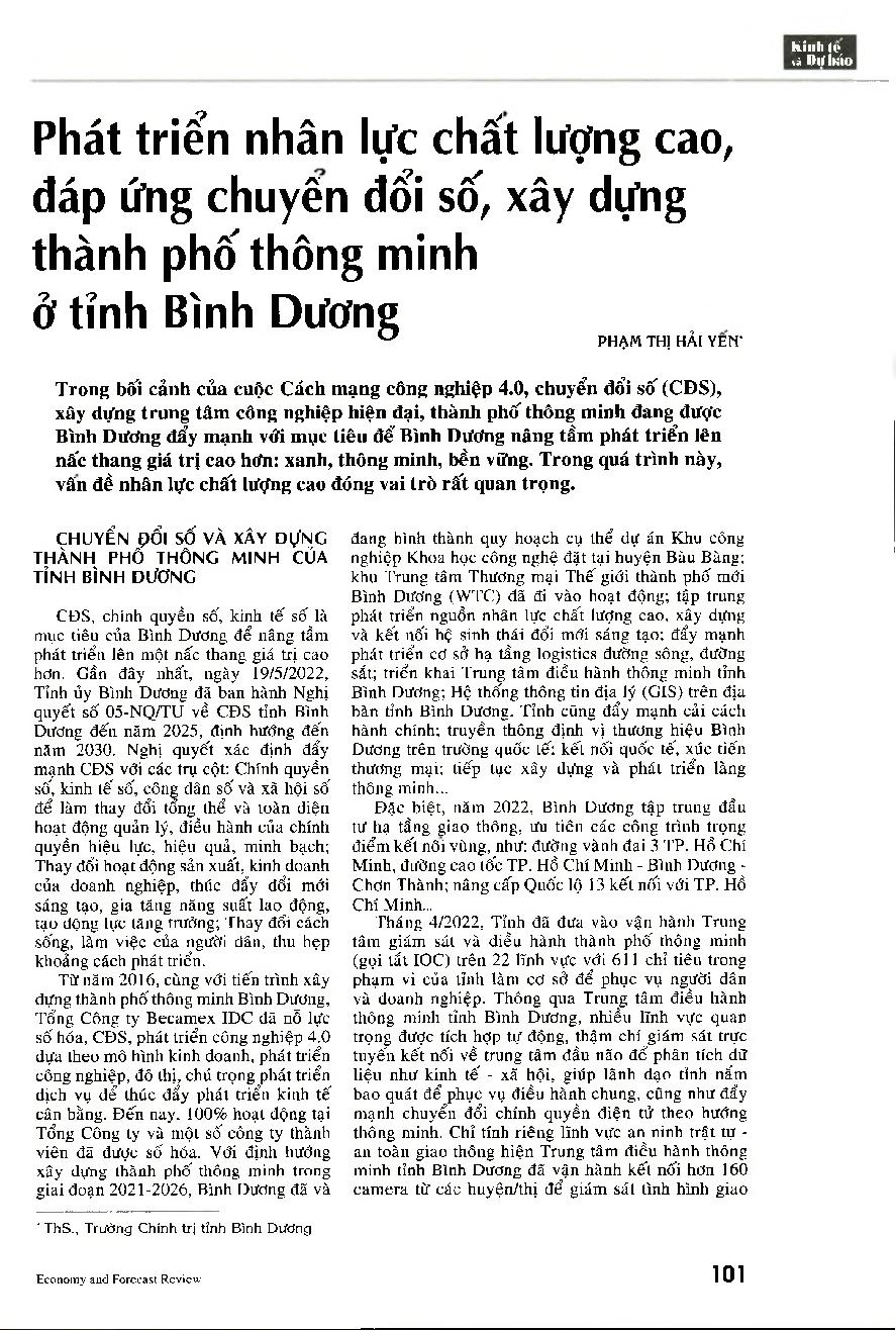 Phát triển nhân lực chất lượng cao, đáp ứng chuyển đổi số, xây dựng thành phố thông minh ở tỉnh Bình Dương