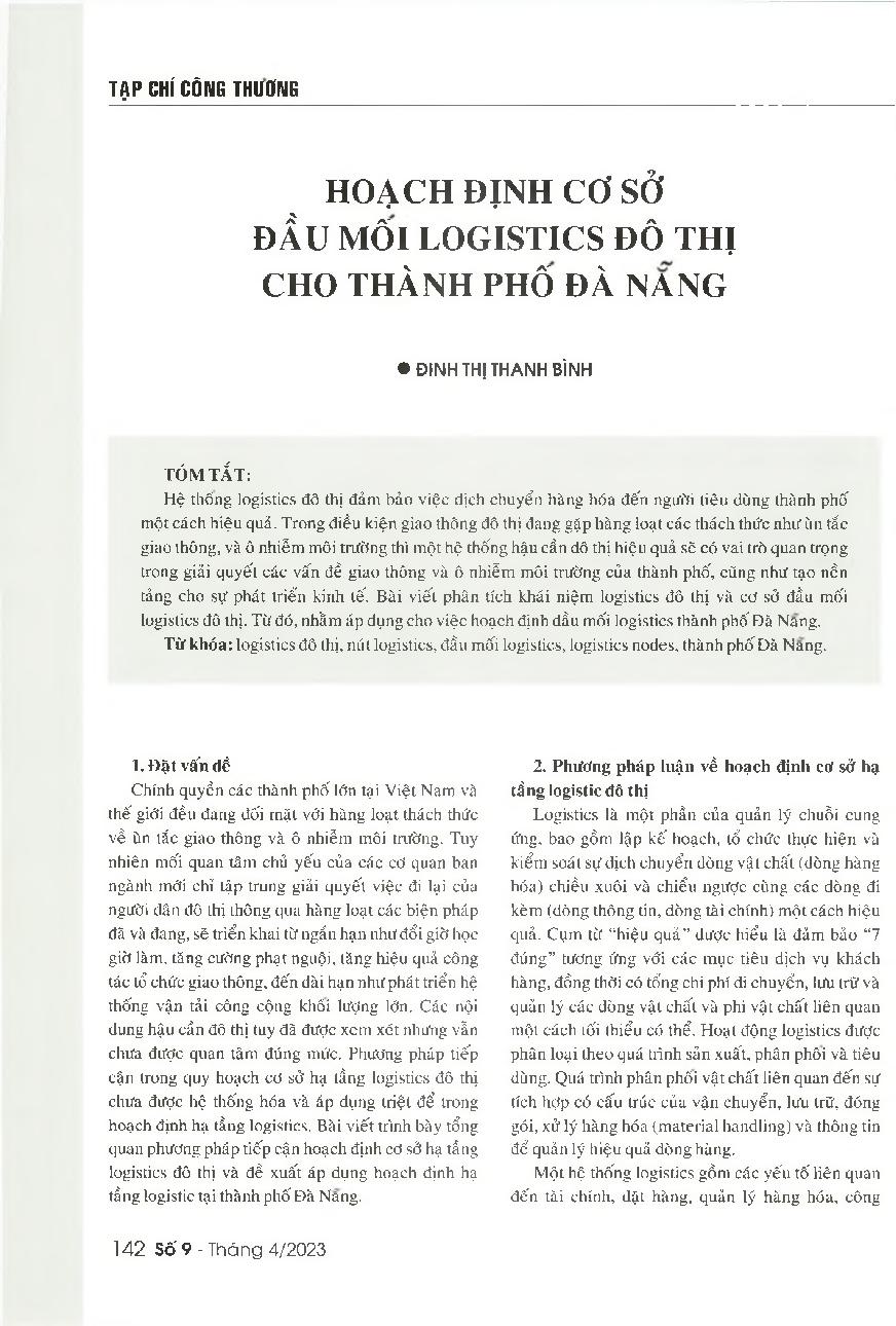Hoạch định cơ sở đầu mối logistics đô thị: Phương pháp luận và vận dụng cho thành phố Đà Nẵng