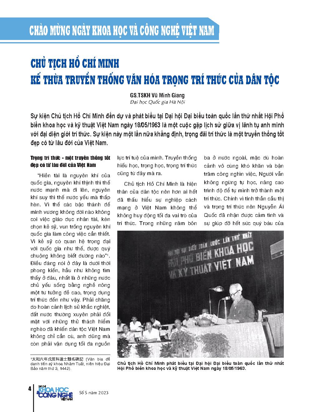 Chủ tịch Hồ Chí Minh kế thừa truyền thống văn hóa trọng trí thức của dân tộc