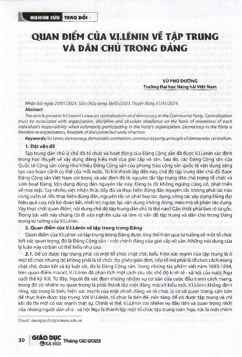 Quan điểm của V.I.Lênin về tập trung và dân chủ trong Đảng = V.l.Lenin's view on centralization and democracy in the Communist Party