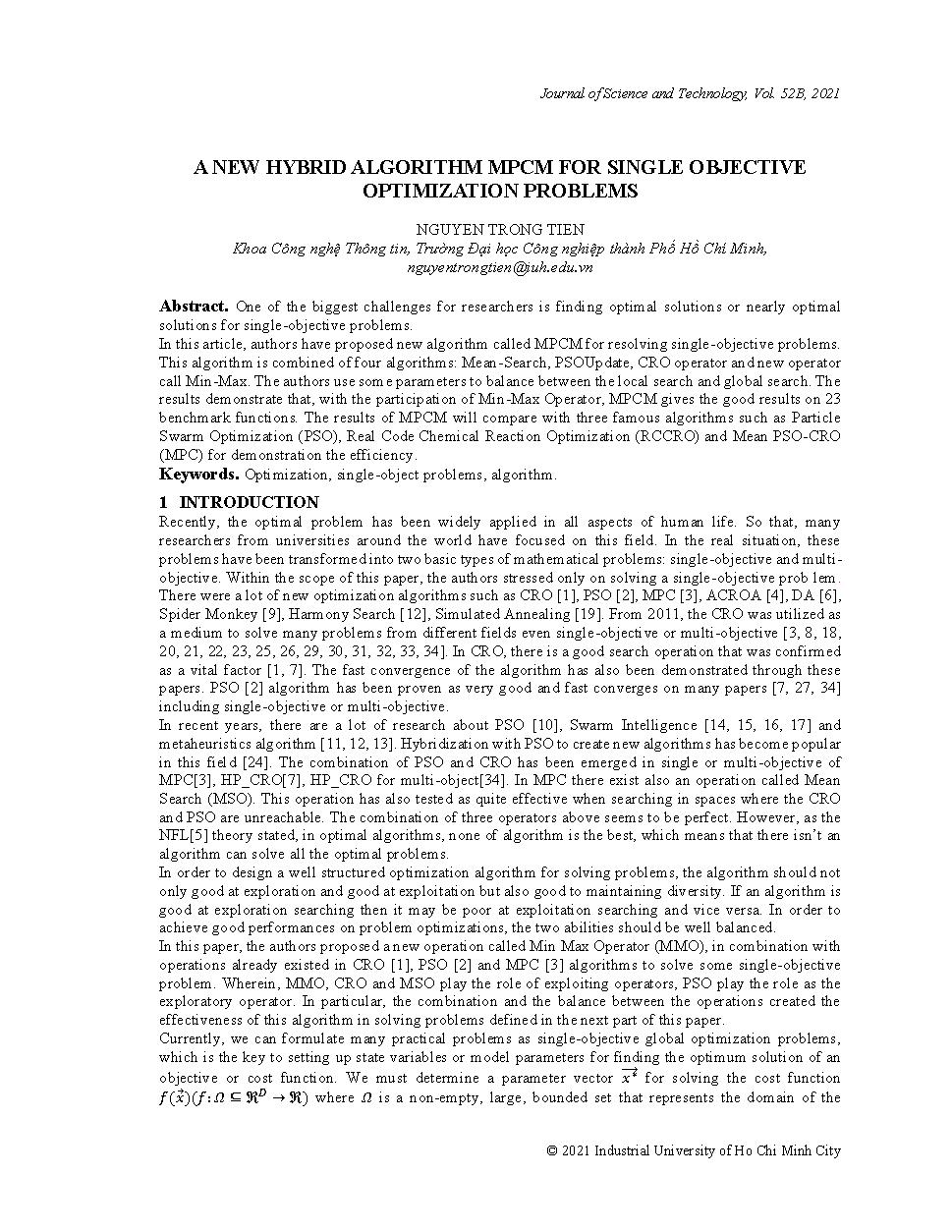 Giải thuật lai ghép mới MPCM cho lớp bài toán tối ưu đơn mục tiêu