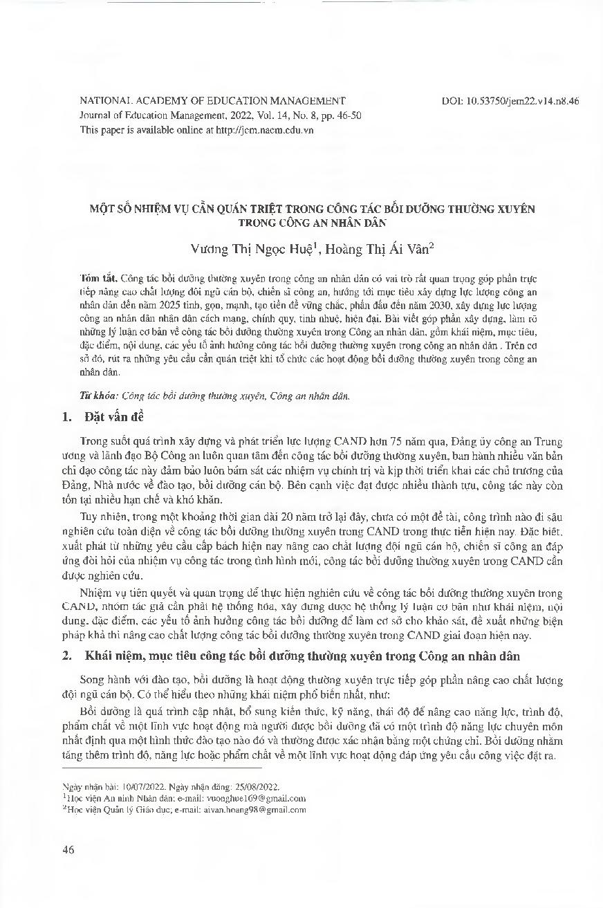Một số nhiệm vụ cần quán triệt trong công tác bồi dưỡng thường xuyên trong công an nhân dân = Some tasks to be considered in regular professional development for people’s public security