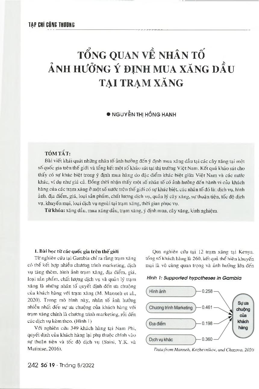Tổng quan về nhân tố ảnh hưởng ý định mua xăng dầu tại trạm xăng = Factors affecting the intention of consumers to purchase petroleum products at petrol stations