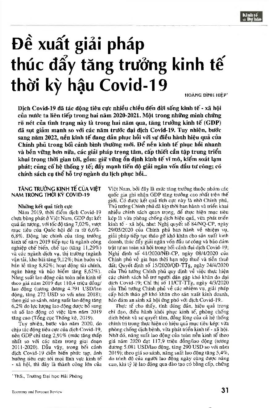 Đề xuất giải pháp thúc đẩy tăng trưởng kinh tế thời kỳ hậu Covid-19
