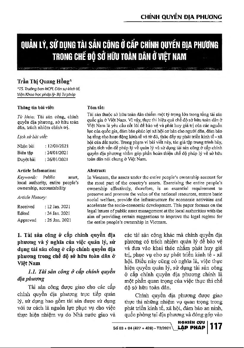 Quản lý, sử dụng tài sản công ở cấp chính quyền địa phương trong chế độ sở hữu toàn dân ở Việt Nam