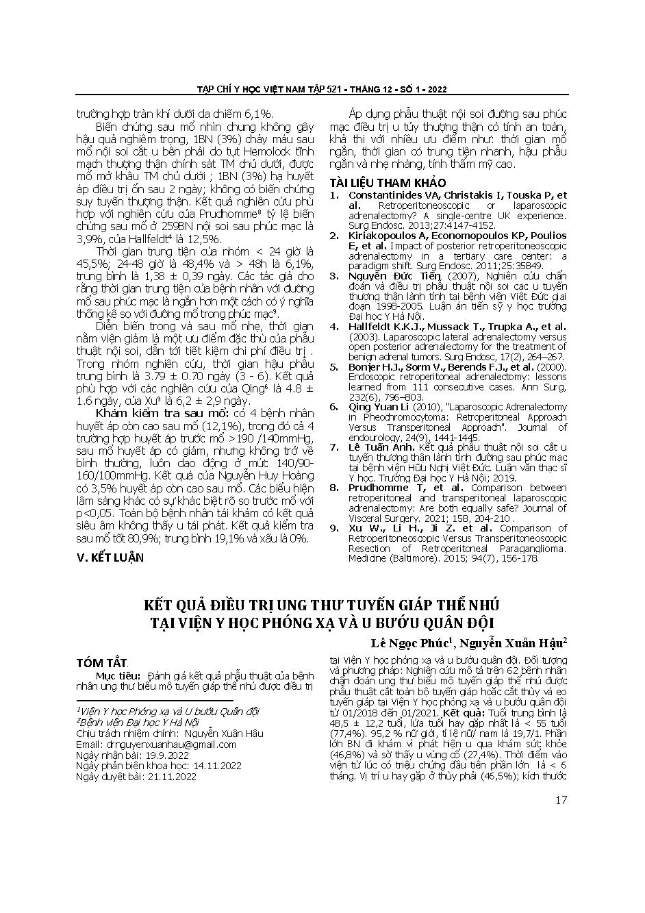 Kết quả điều trị ung thư tuyến giáp thể nhú tại Viện Y học phóng xạ và U bướu Quân đội = Evaluate the results of papillary thyroid cancer at the military institute of radiation and oncology