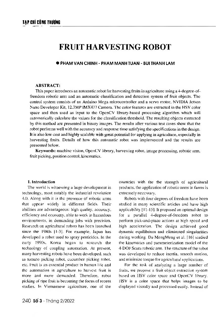Mô hình robot thu hái hoa quả = Fruit harvesting robot