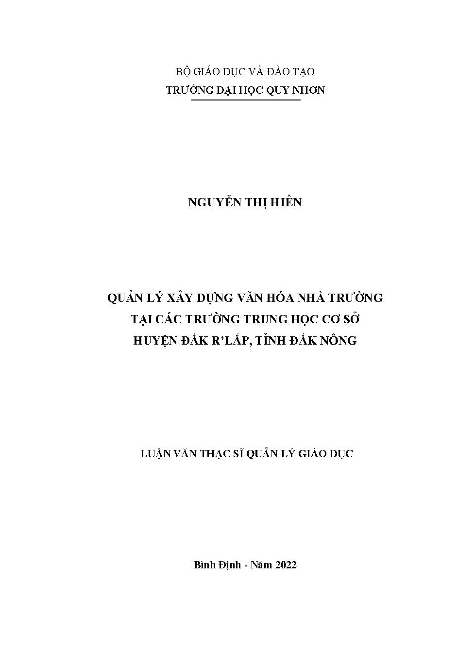 Quản lý xây dựng văn hóa nhà trường tại các trường trung học cơ sở huyện Đắk R'Lấp, tỉnh Đắk Nông