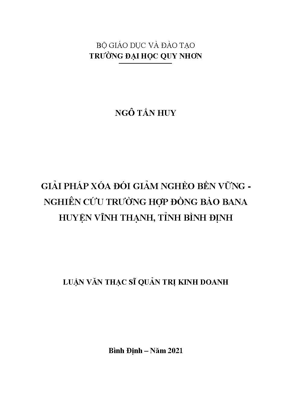 Giải pháp xóa đói giảm nghèo bền vững - Nghiên cứu trường hợp đồng bào Bana huyện Vĩnh Thạnh, tỉnh Bình Định