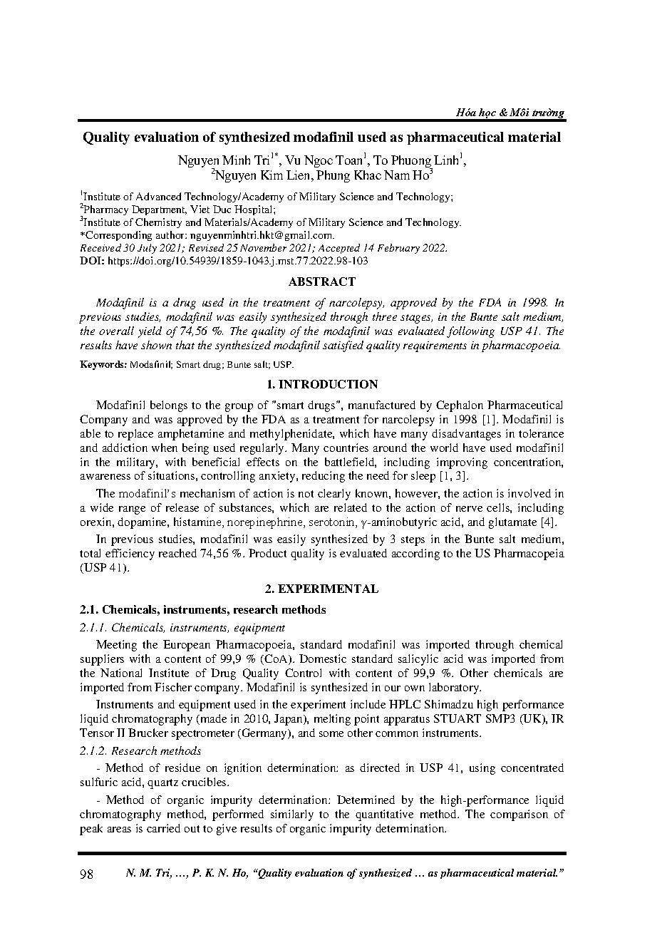 Tác giả: Nguyen Minh Tri; Vu Ngoc Toan; To Phuong Linh; Nguyen Kim Lien; Phung Khac Nam Ho;