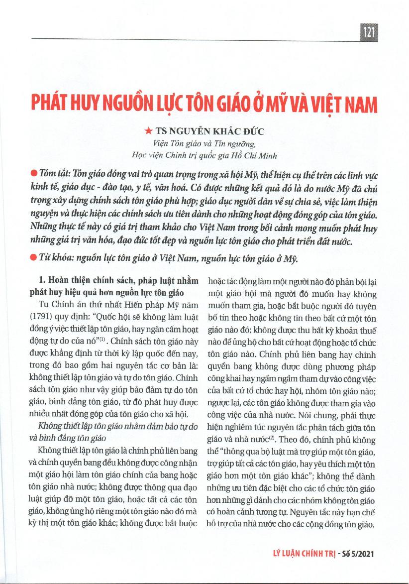 Phát huy nguồn lực tôn giáo ở Mỹ và Việt Nam