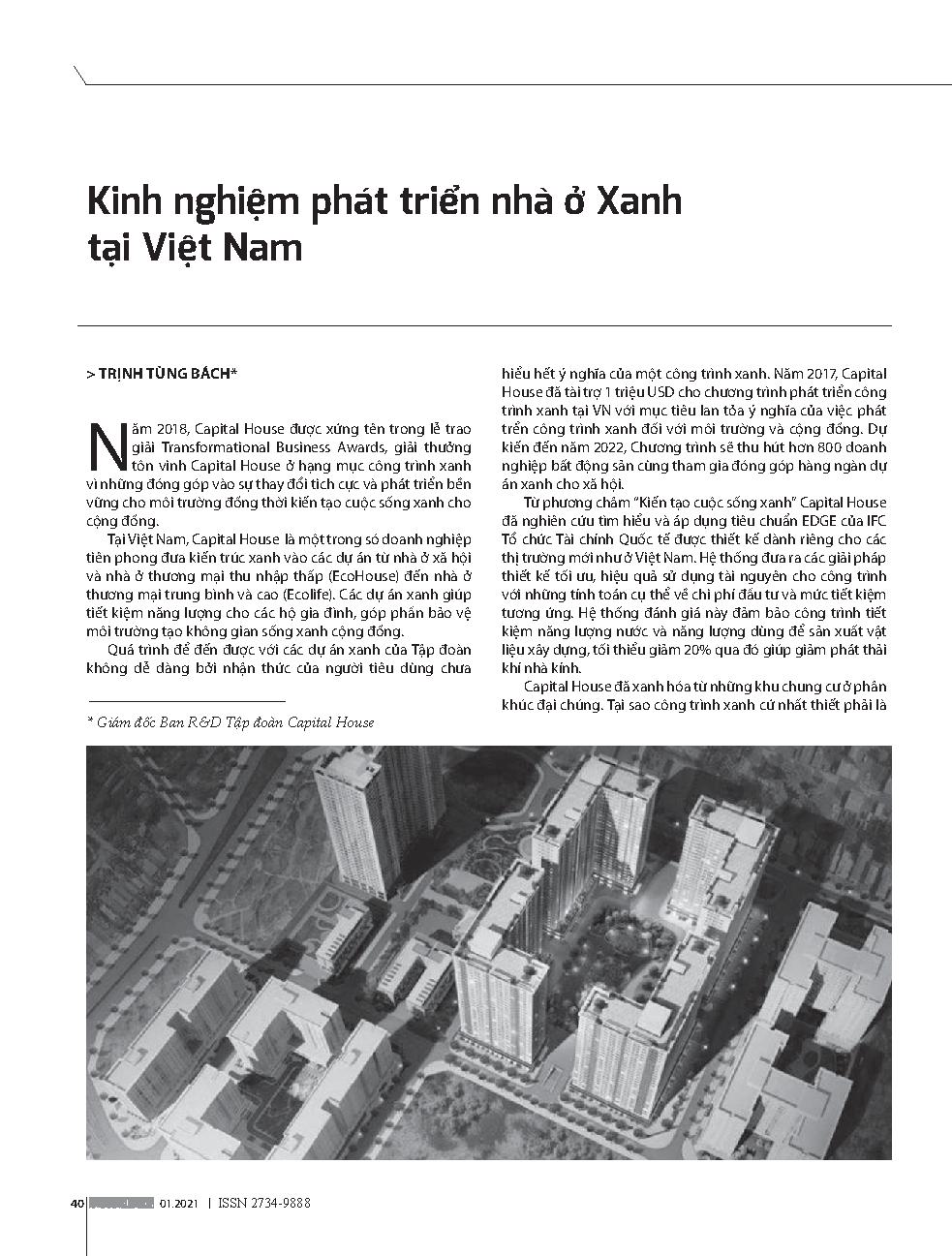 Kinh nghiệm phát triển nhà ở Xanh tại Việt Nam