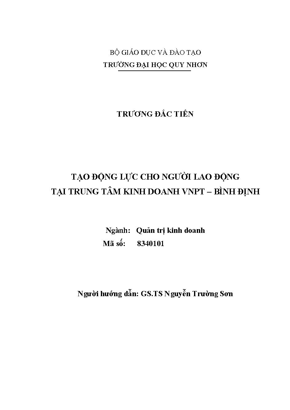 Tạo động lực cho người lao động tại Trung tâm kinh doanh VNPT - Bình Định