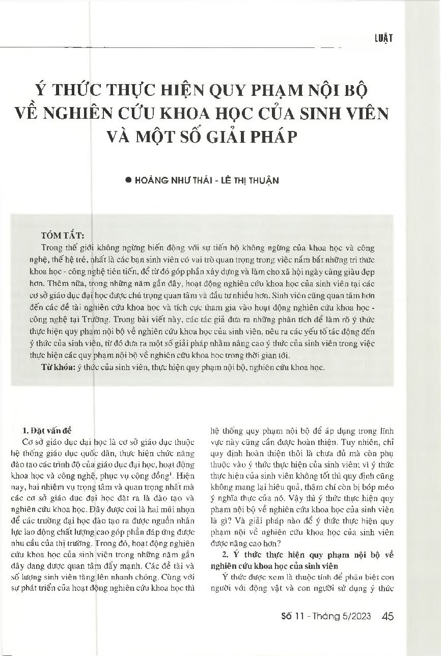 Ý thức thực hiện quy phạm nội bộ về nghiên cứu khoa học cùa sinh viên và một số giải pháp