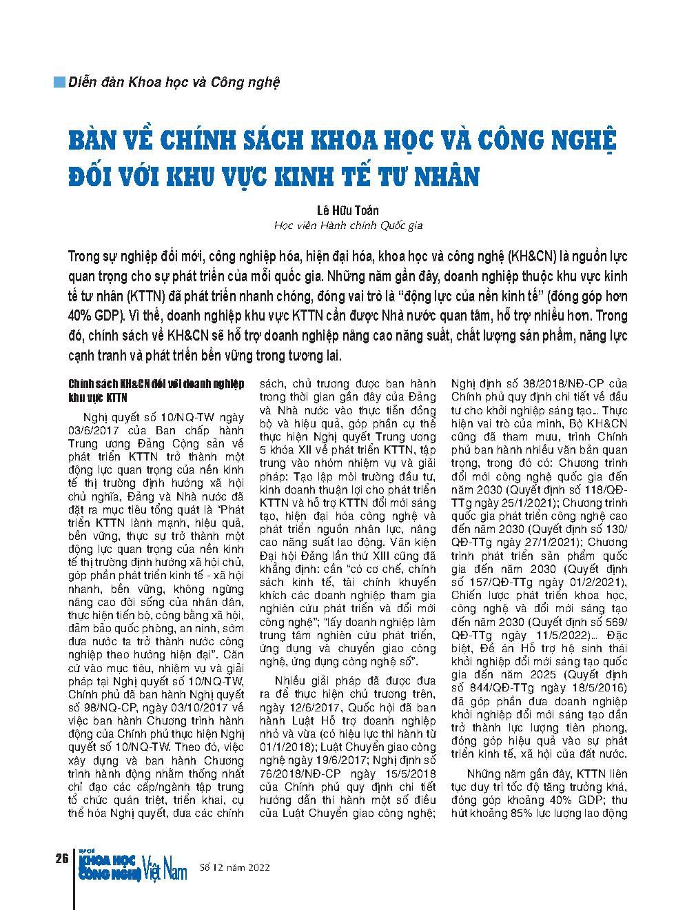 Bàn về chính sách khoa học và công nghệ đối với khu vực kinh tế tư nhân = Discussing science and technology policy towards the private sector