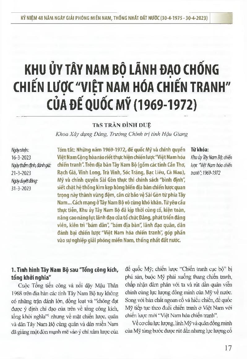 Khu ủy Tây Nam Bộ lãnh đạo chống chiến lược "Việt Nam hóa chiến tranh" của đế quốc Mỹ (1969-1972)