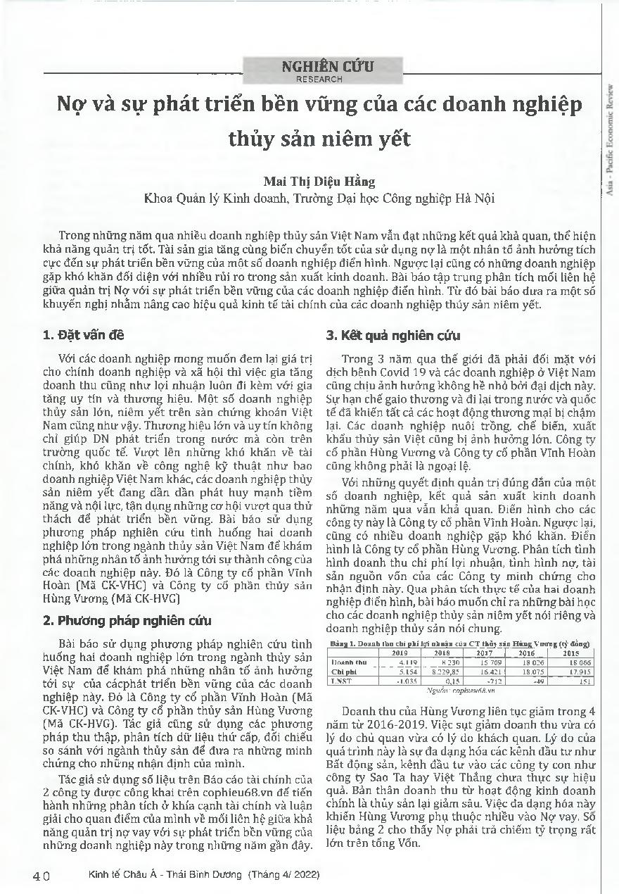 Nợ và Sự phát triển bền vững của các doanh nghiệp thủy sản niêm yết