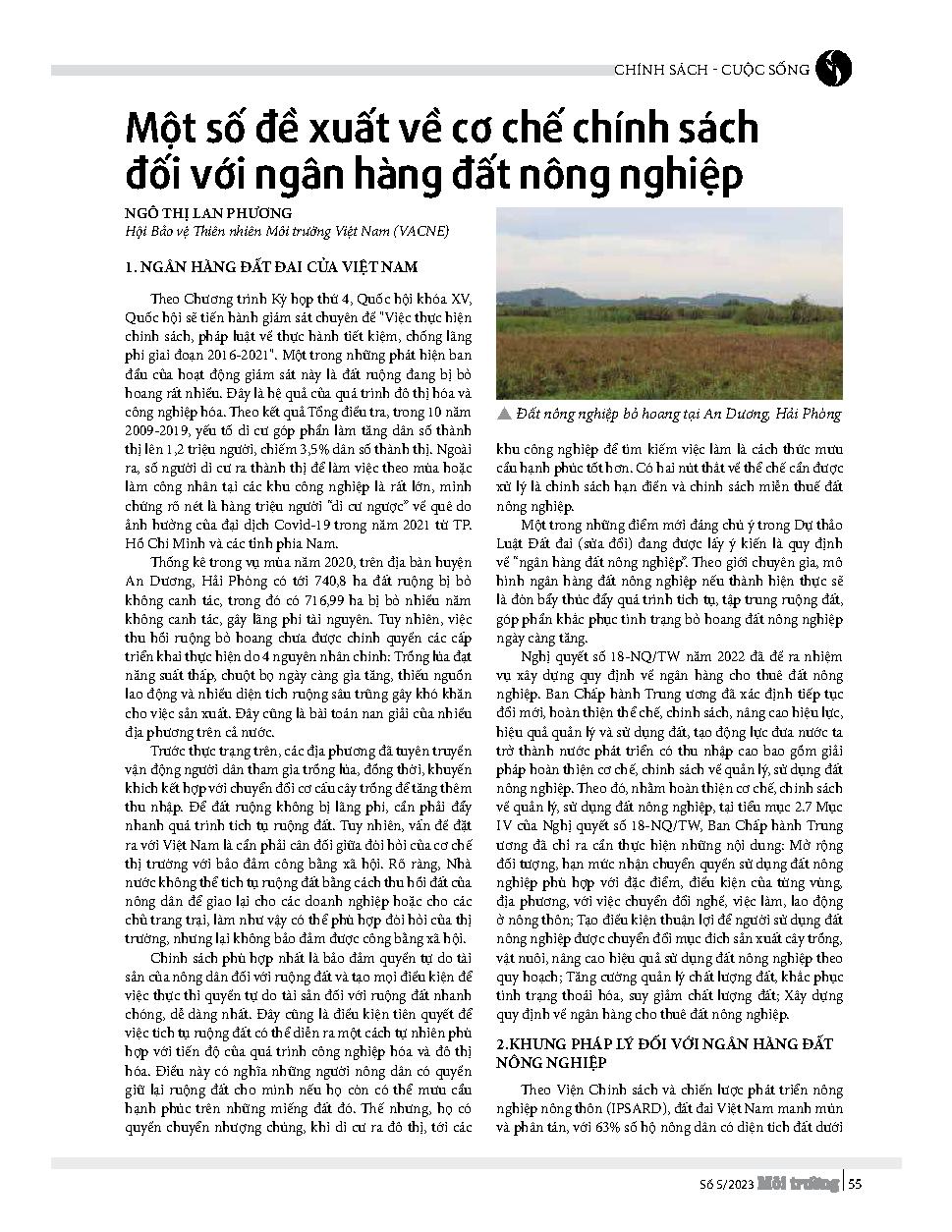 Một số đề xuất về cơ chế chính sách đối với ngân hàng đất nông nghiệp
