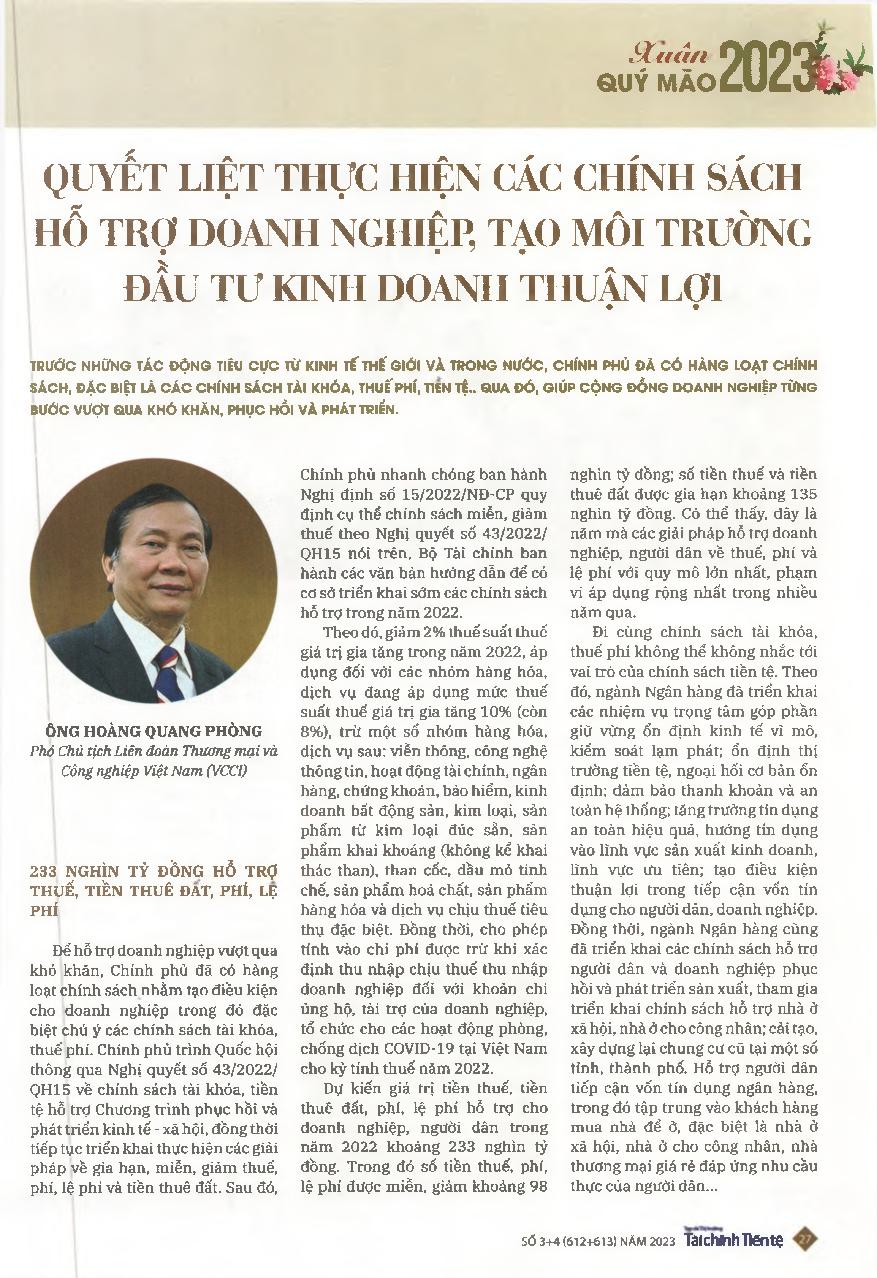 Quyết liệt thực hiện các chính sách hỗ trợ doanh nghiệp, tạo môi trường đầu tư kinh doanh thuận lợi = Drastically implementing policies to support businesses and create a favorable business investment environment