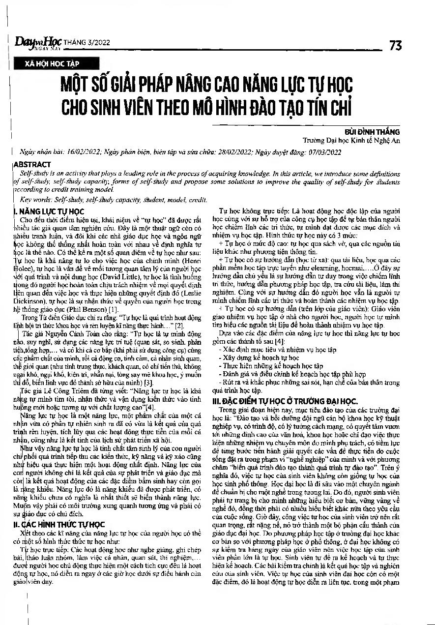 Một số giải pháp nâng cao năng lực tự học cho sinh viên theo mô hình đào tạo tín chỉ = Some solutions to improve students &; 39;self-study ability according to the credit training model