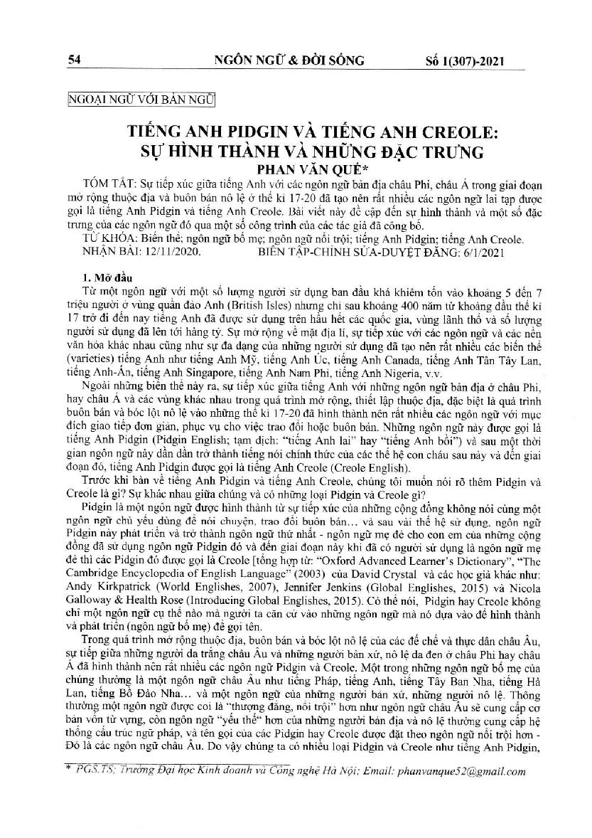 Tiếng Anh Pidgin và tiếng Anh Creole: sự hình thành và những đặc trưng