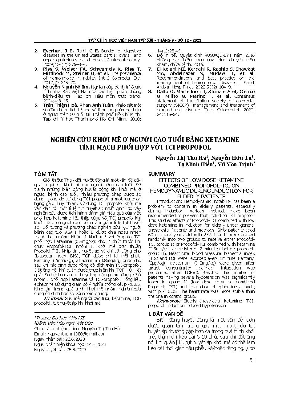 Nghiên cứu khởi mê ở người cao tuổi bằng ketamine tĩnh mạch phối hợp với TCIPropofol = Effects of low dose ketamine combined Propofol-TCIon hemodynamic during induction for elderly patients