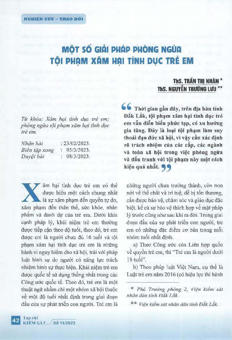 Một số giải pháp phòng ngừa tội phạm xâm hại tình dục trẻ em