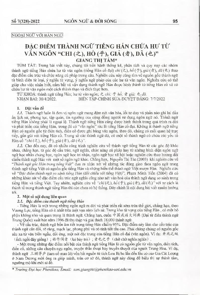 Đặc điểm thành ngữ tiếng hán chứa hư từ văn ngôn “chi,hồ, giả, dã” = Characteristics of Chinese idioms containing the Literary Chinese’s formal words