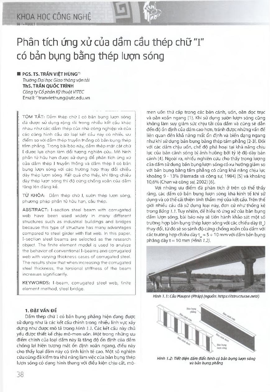 Phân tích ứng xử của dầm cầu thép chữ "I" có bàn bụng bằng thép lượn sóng = Response analysis of the l-shaped steel beam with corrugated steel web