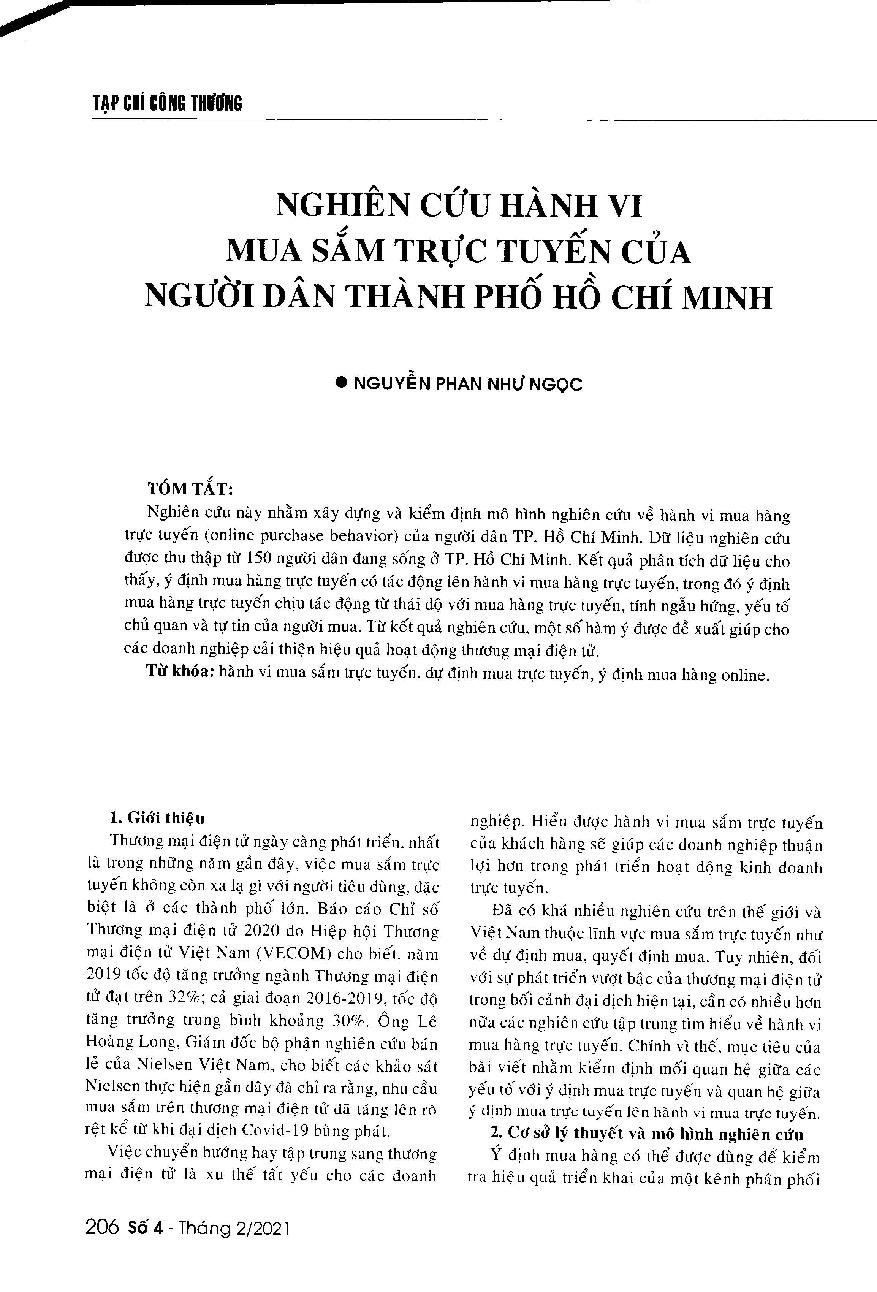 Nghiên cứu hành vi mua sắm trực tuyến của người dân Thành phố Hồ Chí Minh = A research on online purchase behavior of people living in Ho Chi Minh City