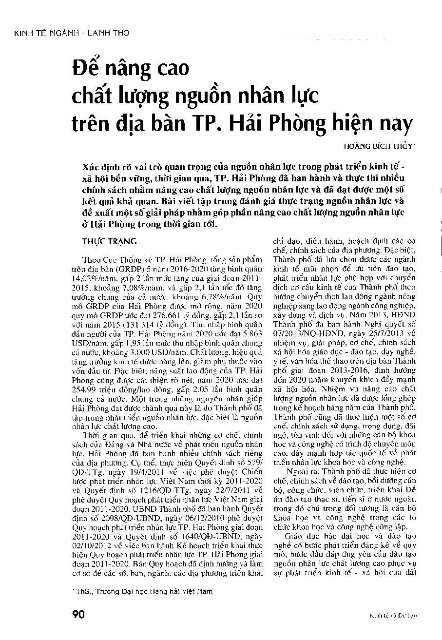 Để nâng cao chất lượng nguồn nhân lực trên địa bàn Tp. Hải Phòng hiện nay