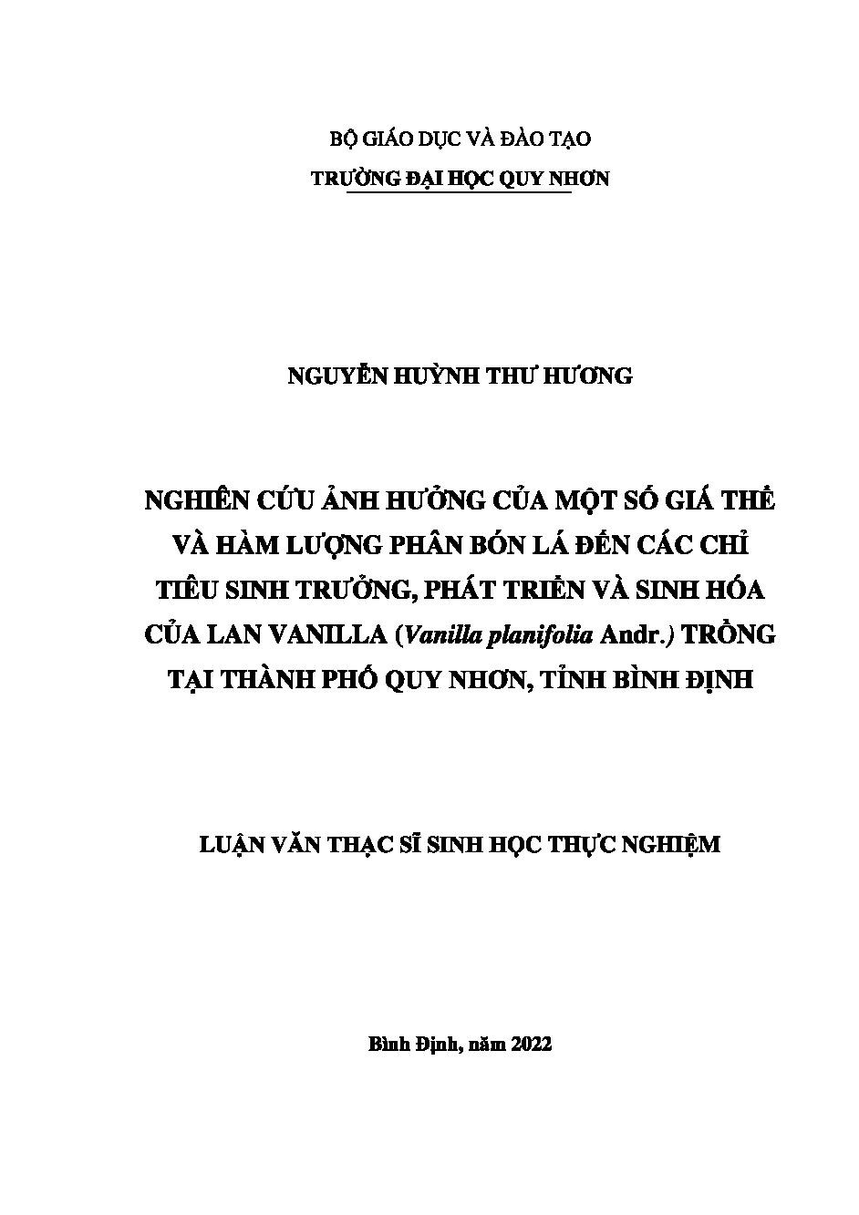 Nghiên cứu ảnh hưởng của một số giá thể và hàm lượng phân bón lá đến các chỉ tiêu sinh trưởng, phát triển và sinh hóa của lan Vanilla (Vanilla planifolia Andr.) trồng tại thành phố Quy Nhơn, tỉnh Bình Định