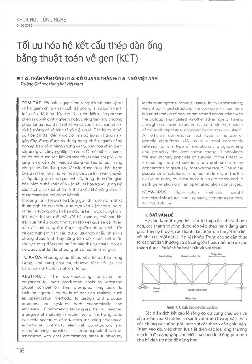 Tối ưu hóa hệ kết cấu thép dàn ống bằng thuật toán vẽ gen (KCT) = Optimizing tubular truss of the green house by applying the genetic algorithm