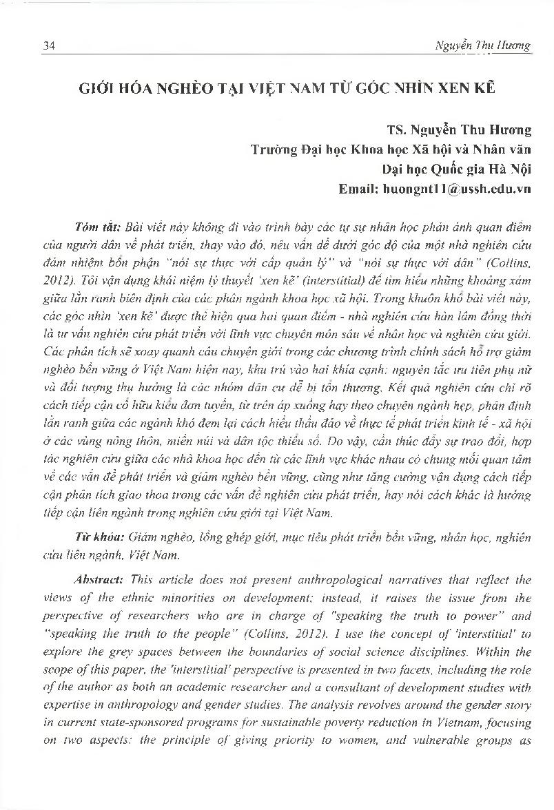 Giới hóa nghèo tại Việt Nam từ góc nhìn xen kẽ = Gendering poverty in Vietnam from an alternate perspective