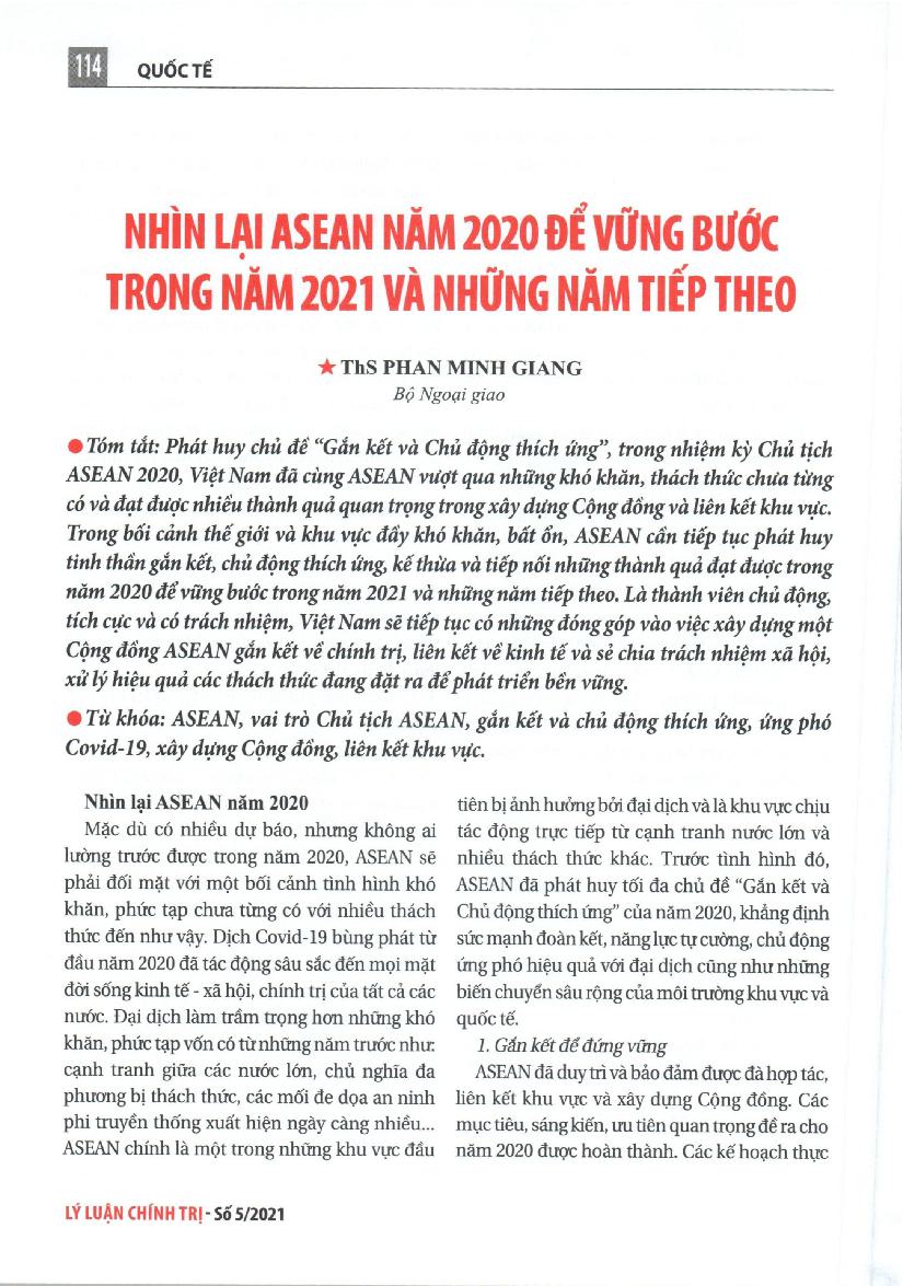 Nhìn lại Asean năm 2020 để vững bước trong năm 2021 và những năm tiếp theo