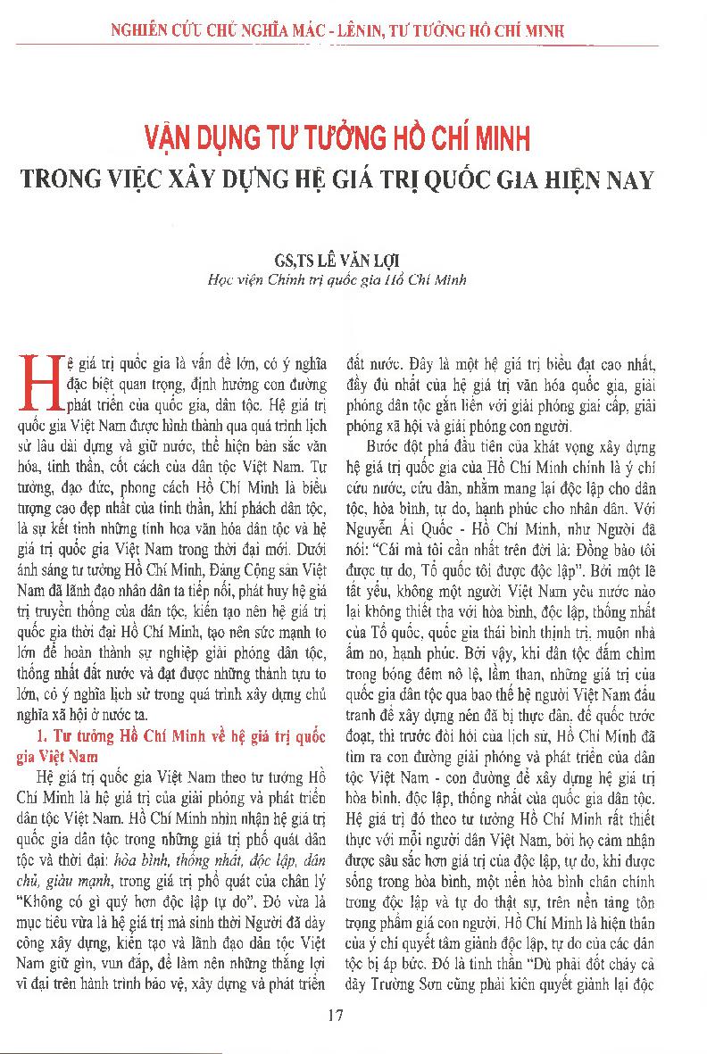 Vận dụng tư tưởng Hồ Chí Minh trong việc xây dựng hệ giá trị quốc gia hiện nay
