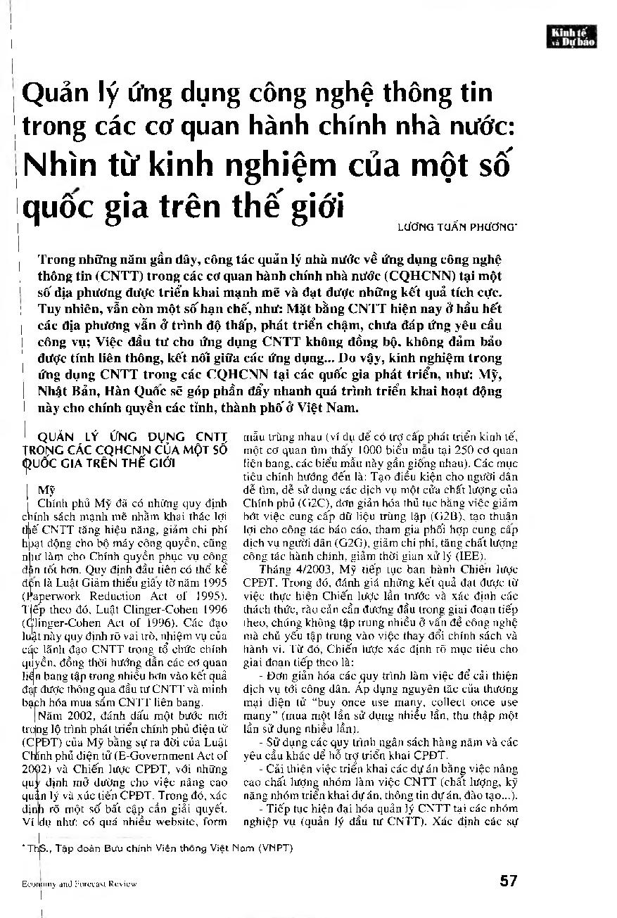 Quản lý ứng dụng công nghệ thông tin trong các cơ quan hành chính nhà nước: Nhìn từ kinh nghiệm của một số quốc gia trên thế giới