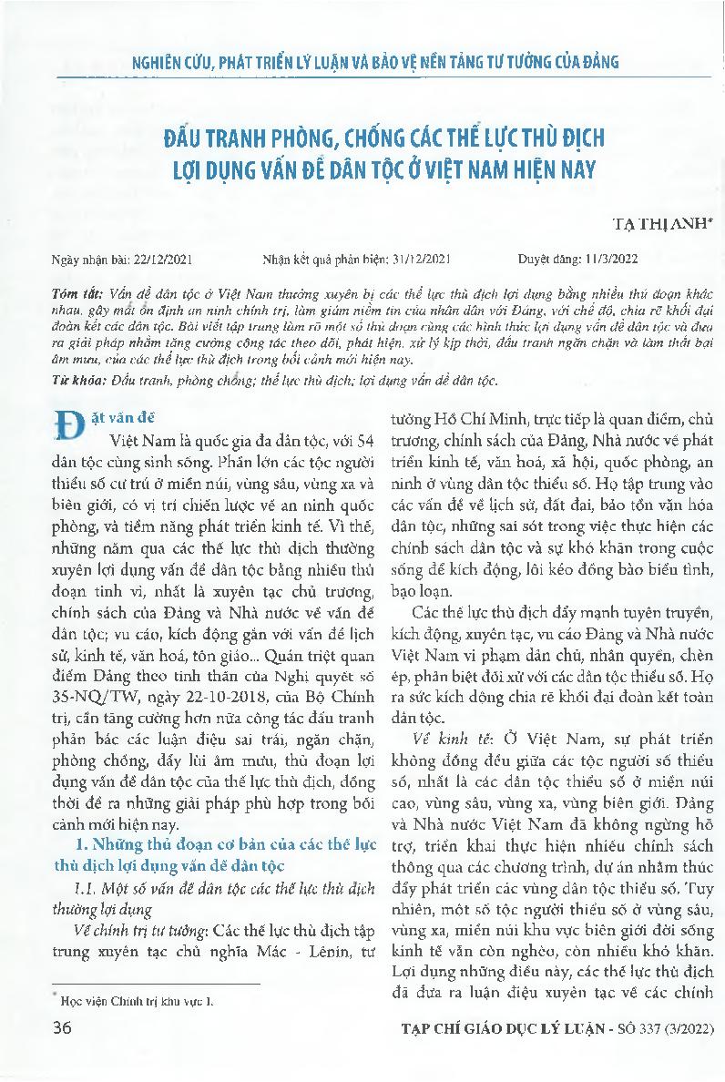 Đấu tranh phòng, chống các thế lực thù địch lợi dụng vấn đề dân tộc ở Việt Nam hiện nay