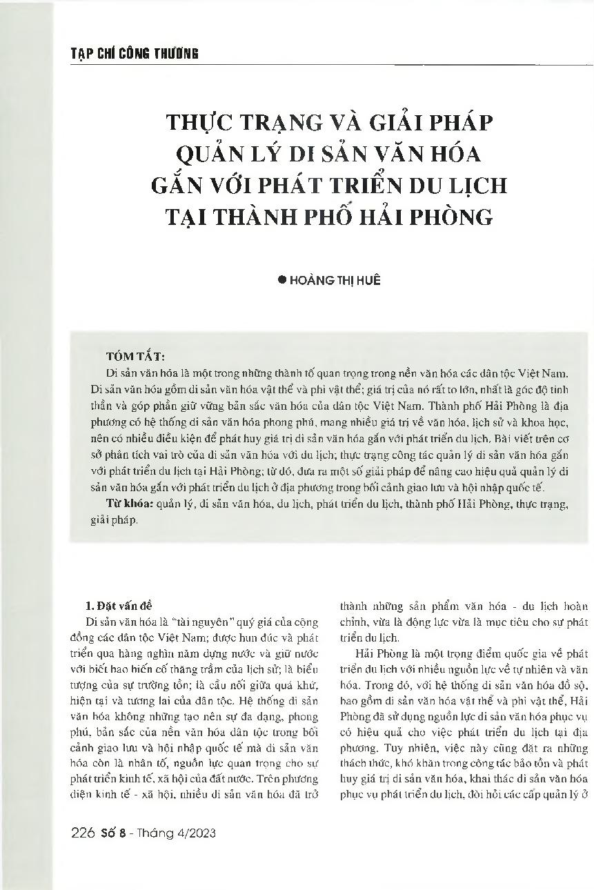 Thực trạng và giải pháp quản lý di sản văn hóa gắn với phát triển du lịch tại thành phố Hải Phòng