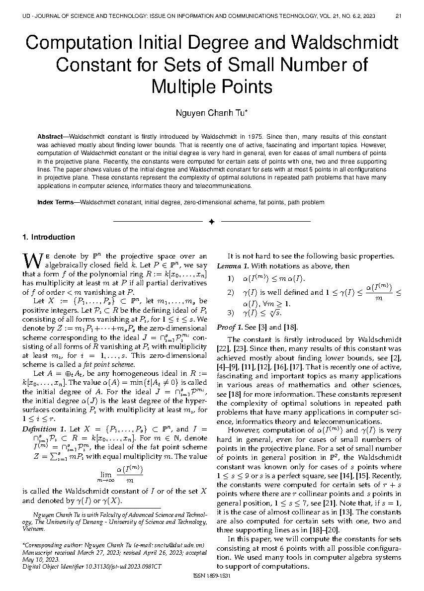 Tính toán độ ban đầu và hằng số waldschmidt cho các tập hợp số lượng nhỏ nhiều điểm = Computation initial degree and waldschmidt constant for sets of small number of multiple points