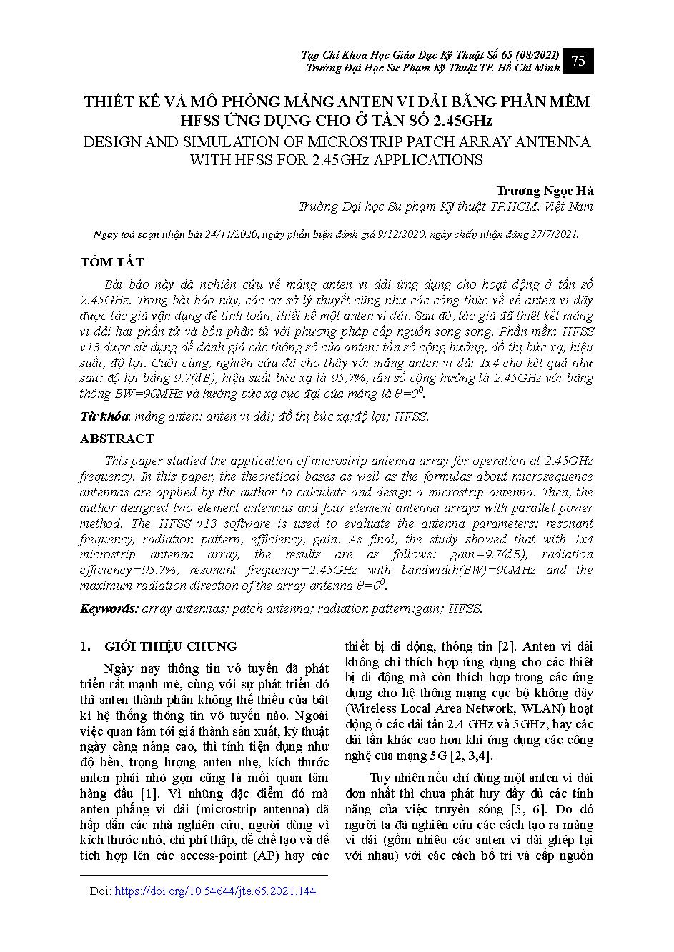 Thiết kế và mô phỏng mảng anten vi dải bằng phần mềm HFSS ứng dụng cho ở tần số 2.45GHz