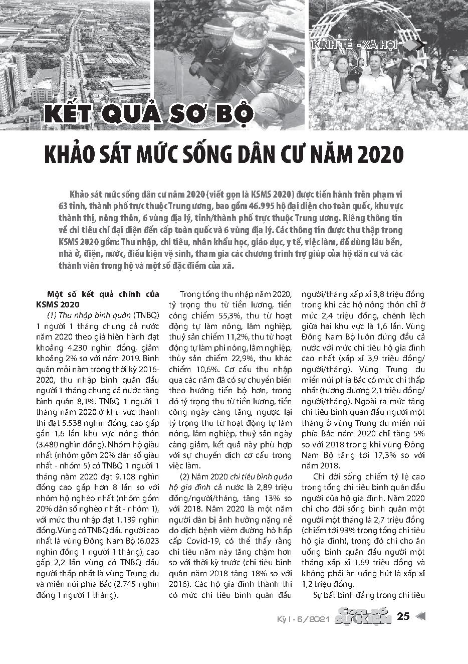 Kết quả sơ bộ khảo sát mức sống dân cư năm 2020