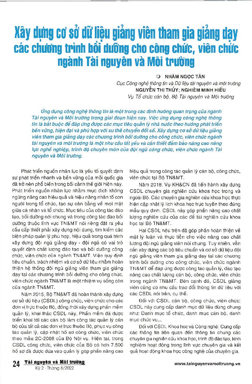 Xây dựng cơ sở dữ liệu giảng viên tham gia giảng dạy các chương trình bồi dưỡng cho công chức, viên chức ngành Tài nguyên và Môi trường