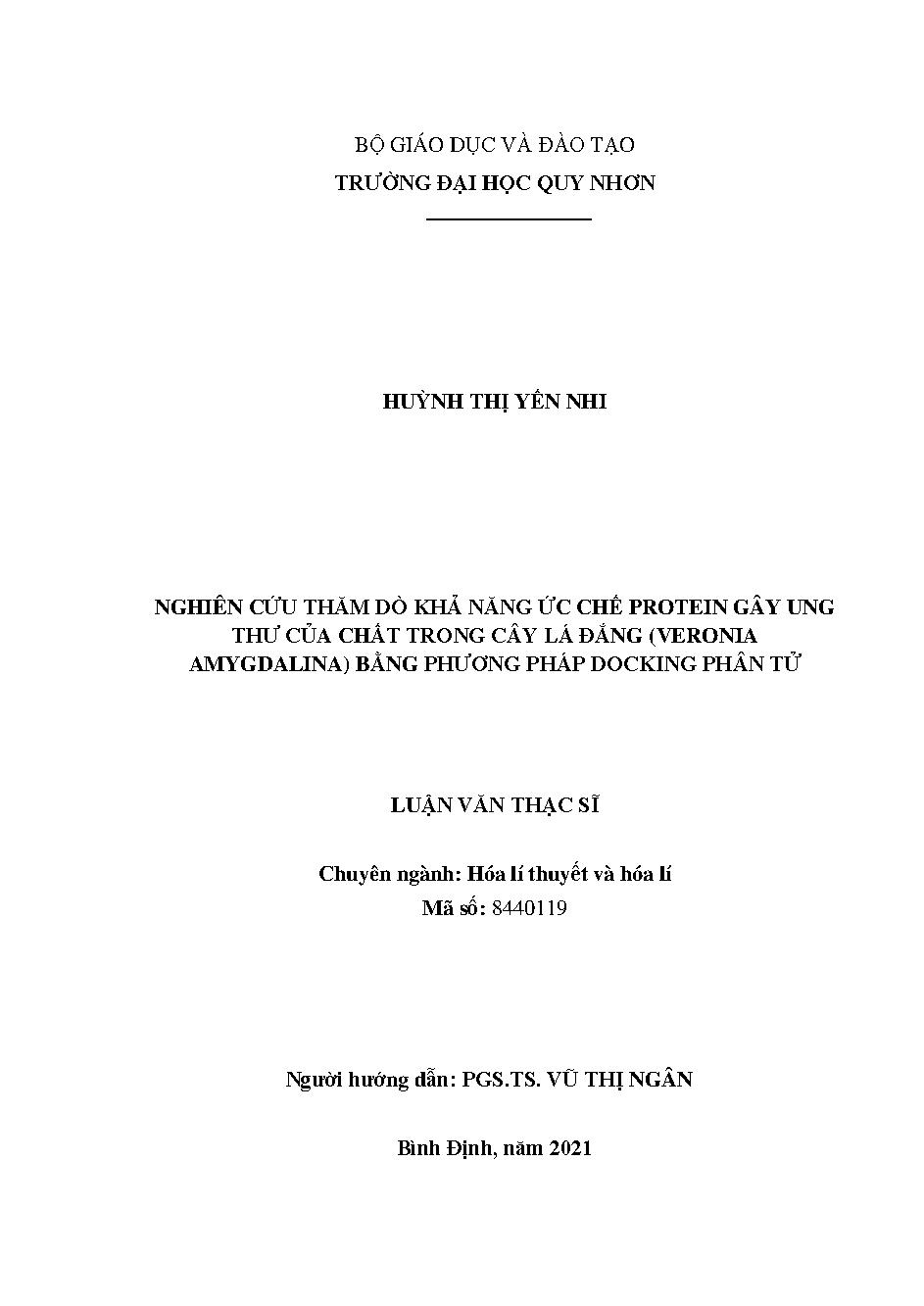 Nghiên cứu thăm dò khả năng ức chế protein gây ung thư của chất trong cây lá Đắng (Veronia amygdalina) bằng phương pháp docking phân tử