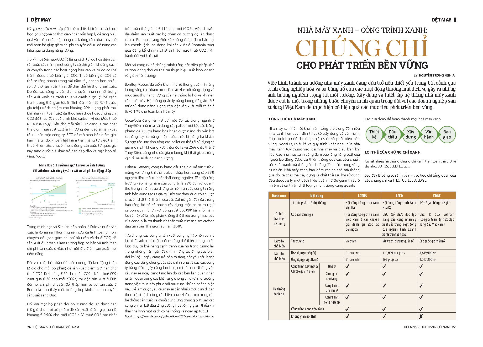 Nhà máy xanh – công trình xanh: Chứng chỉ cho phát triển bền vững