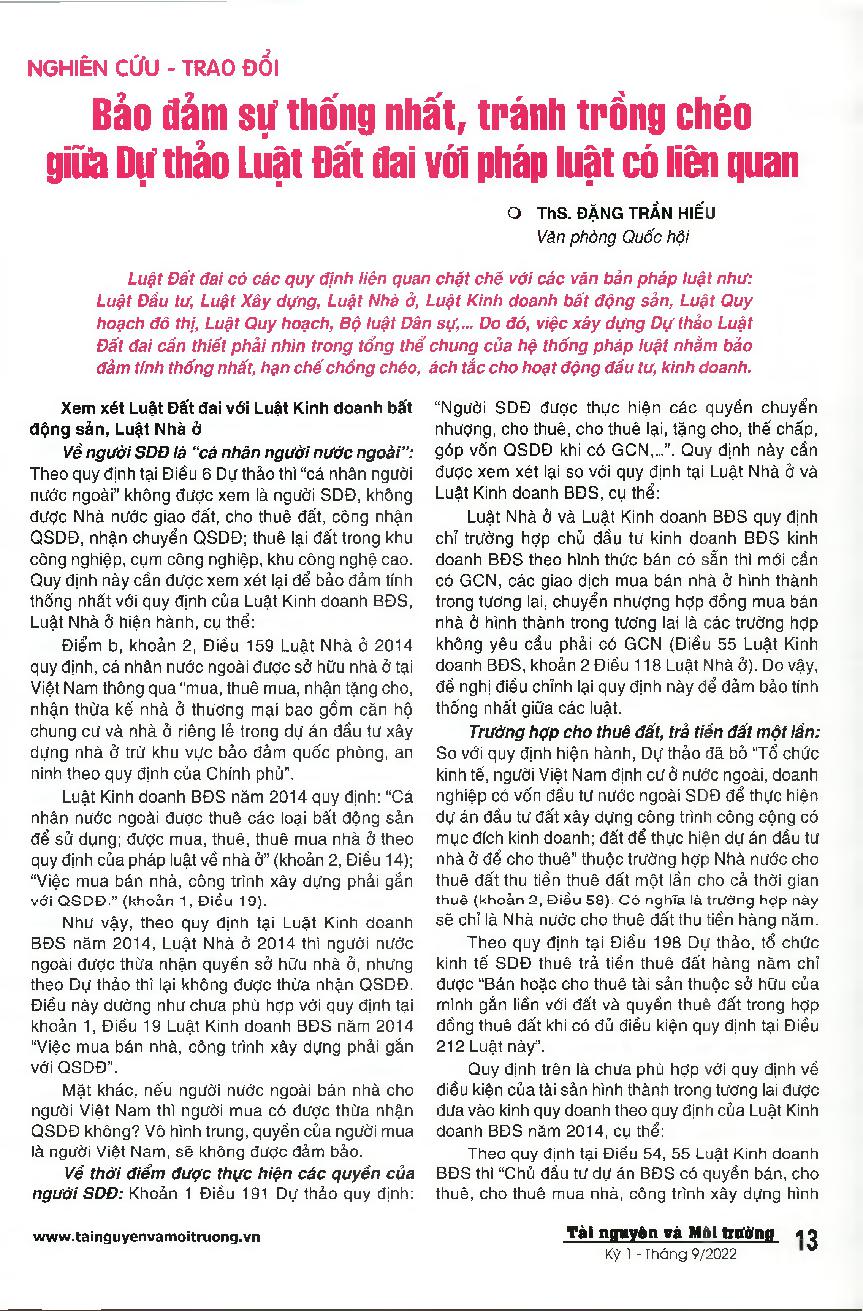 Bảo đảm sự thống nhất, tránh trồng chéo giữa Dự thảo Luật Đất đai với pháp luật có liên quan